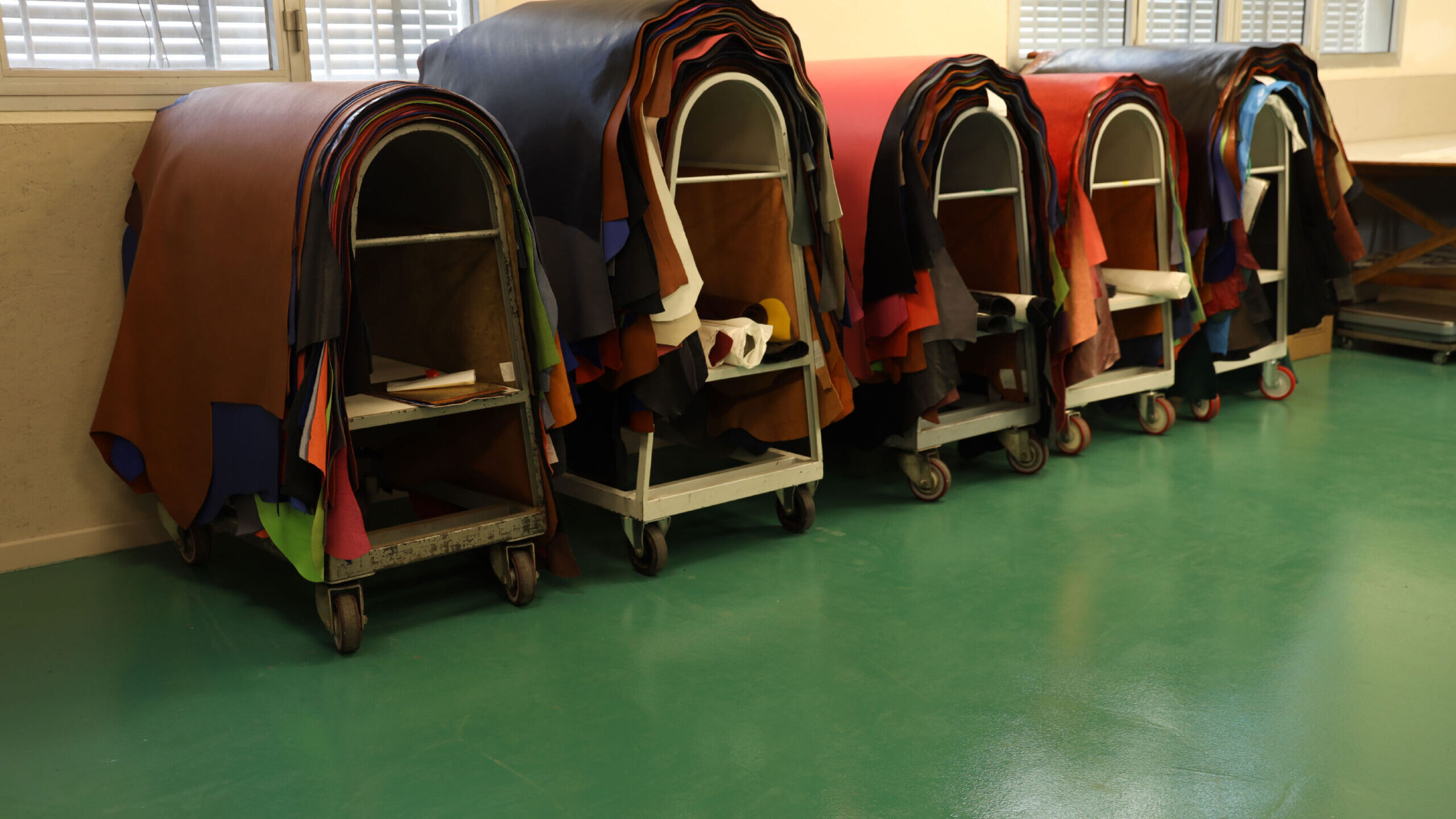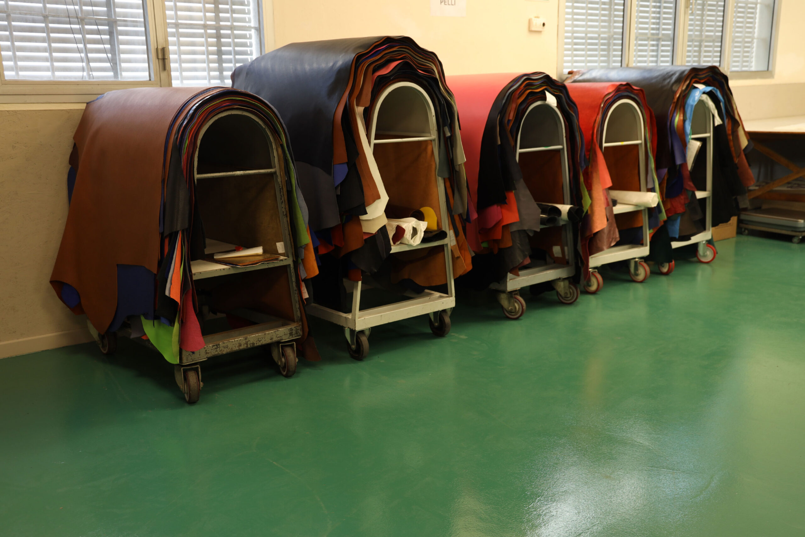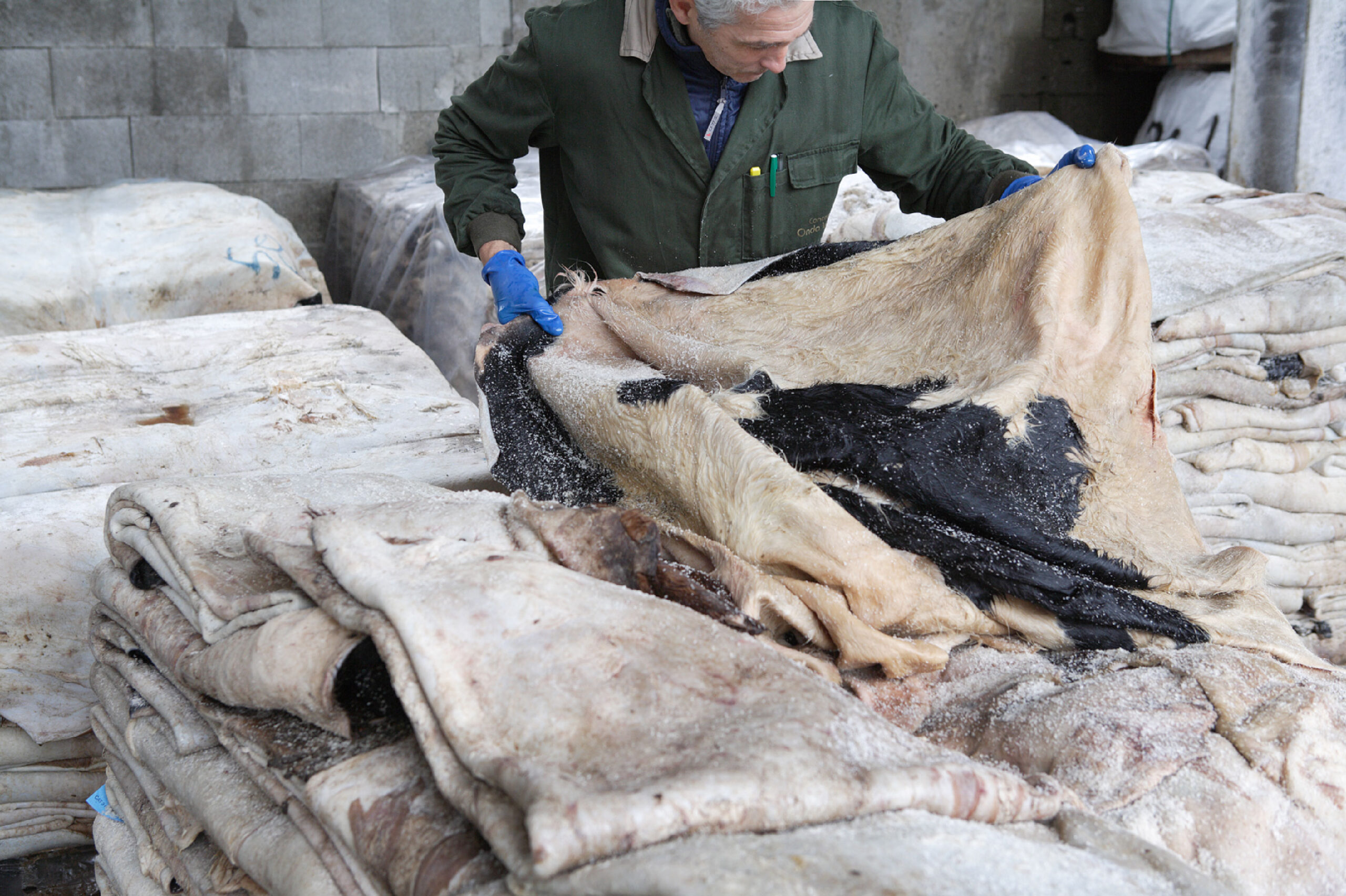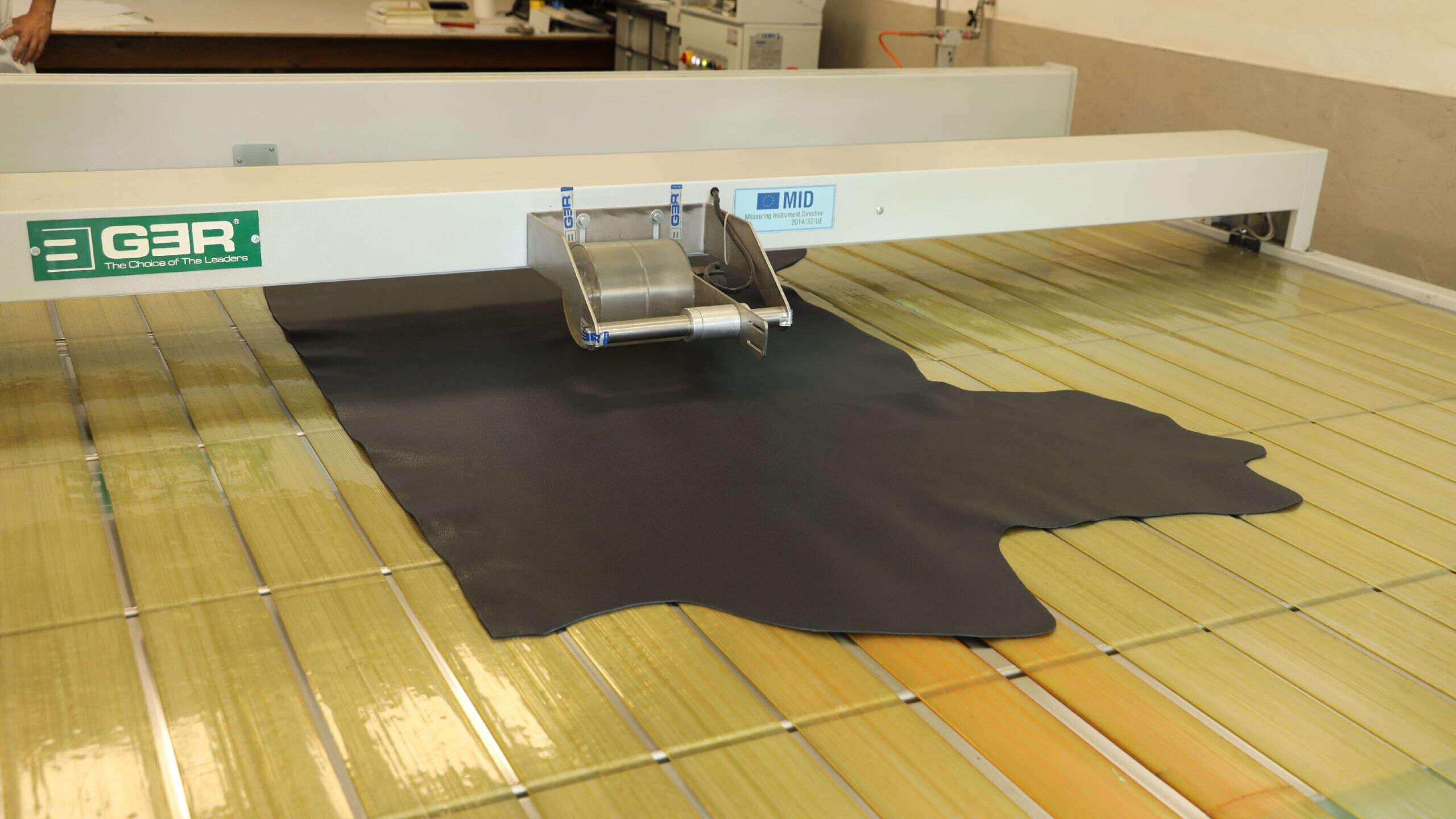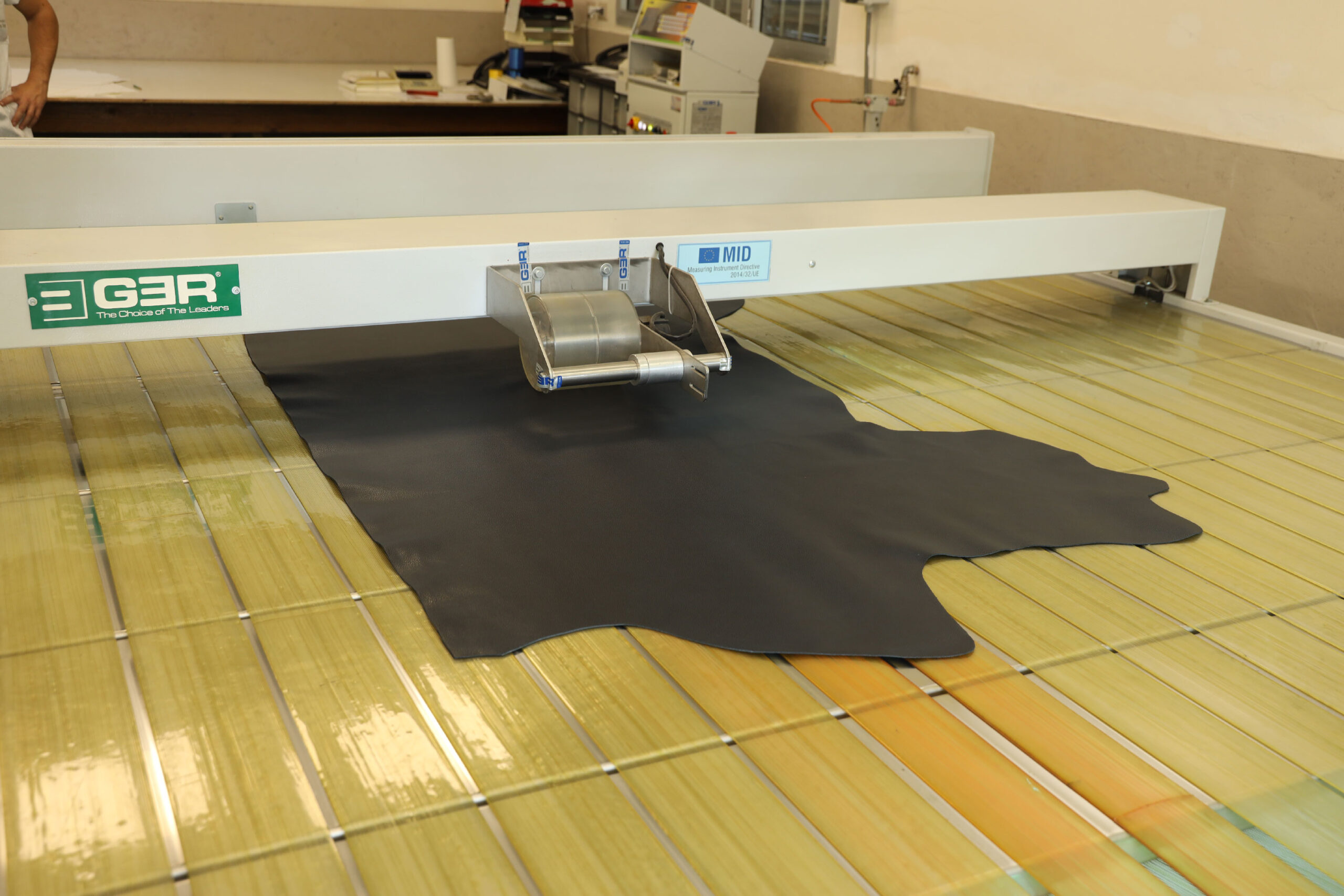 Misurazione magazzino: la misurazione si effettua con una “misuratrice”, la quale calcola la superficie della pelle in metri quadri (M2) o Piedi quadri (Pq).