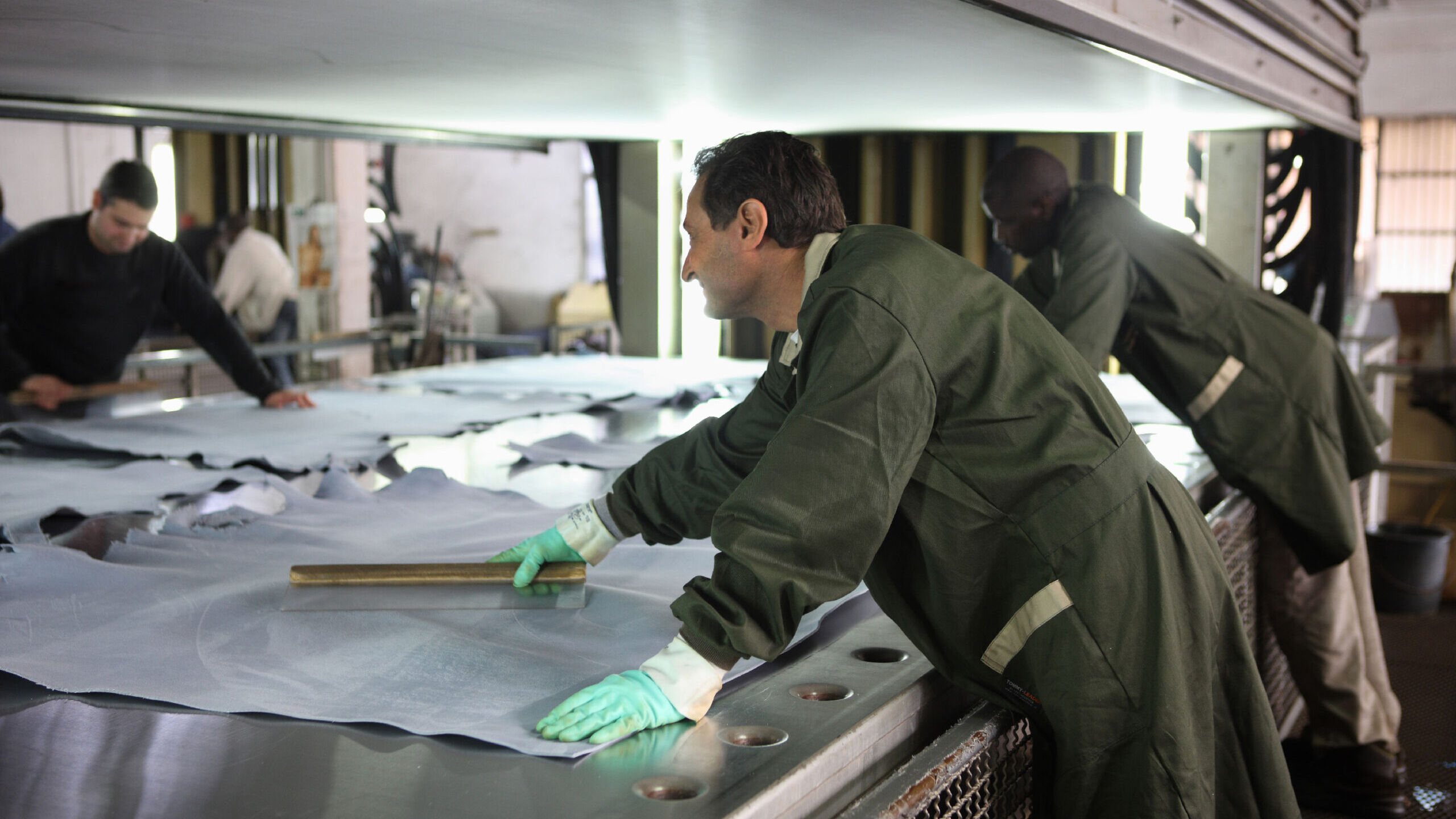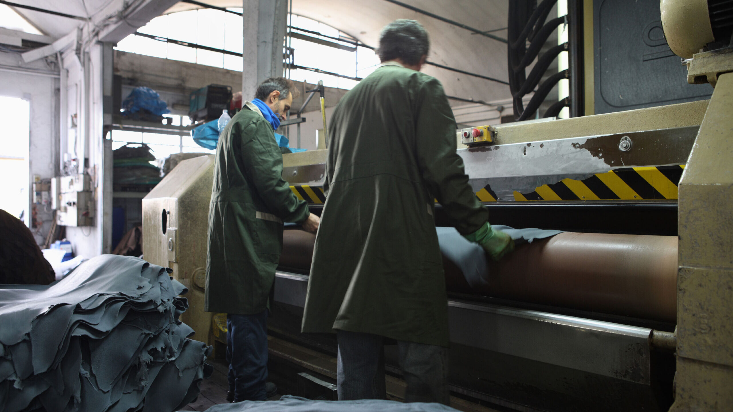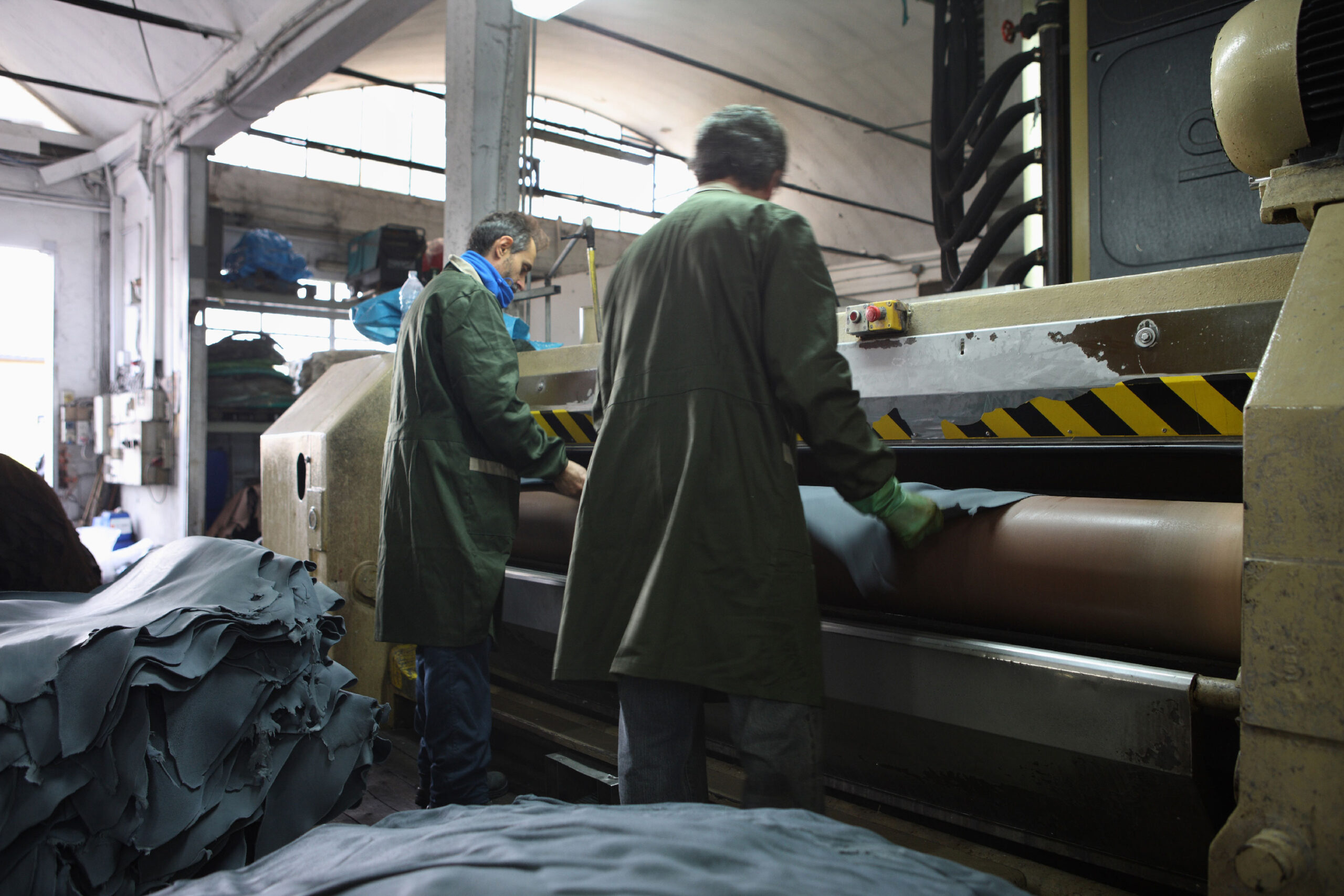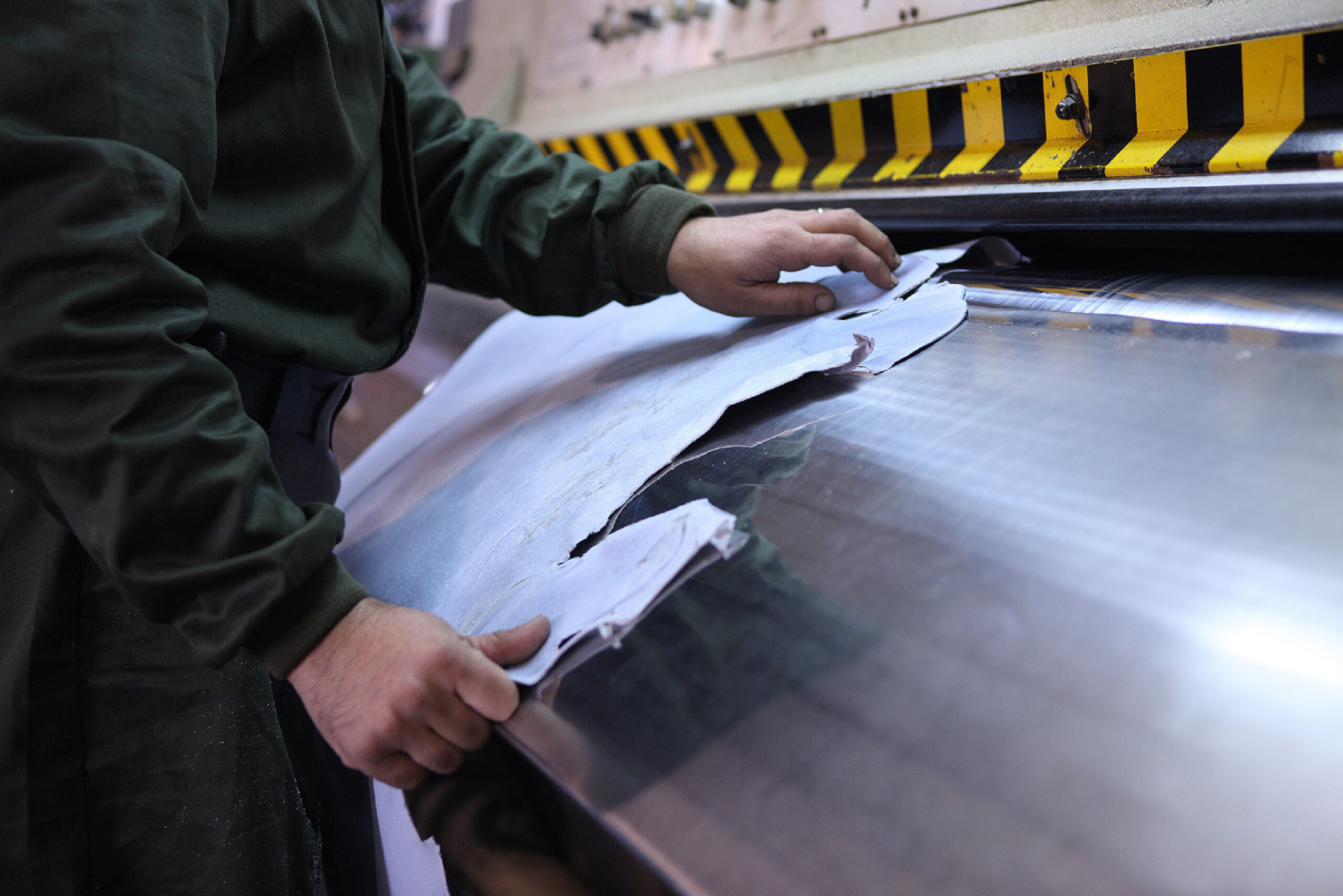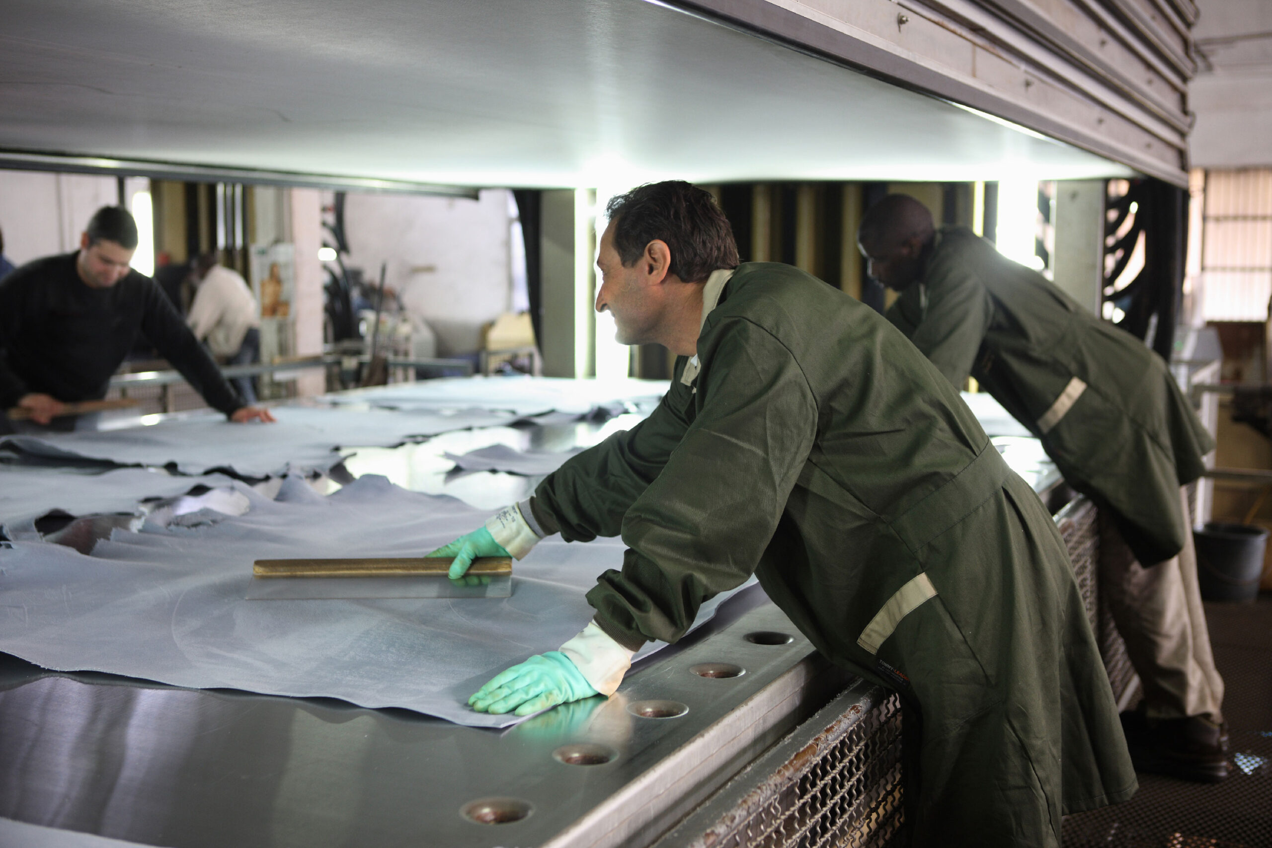 Stiratura: il film creato sulla superficie della pelle subirà altri trattamenti di lisciatura, con l’ausilio di vari macchinari che donano il look finale alla superficie della pelle.