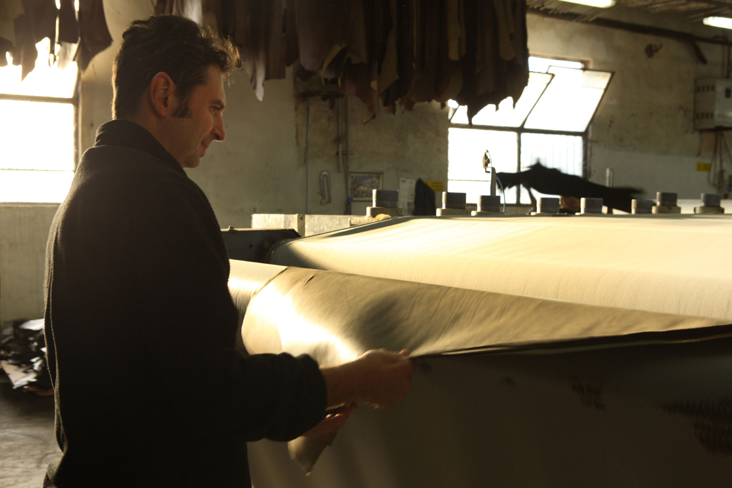 Sottovuoto: è un’operazione di lisciatura del fiore ed essiccazione, consiste nel distendere la pelle con il lato fiore su una piastra liscia e riscaldata per circa 5/6 minuti e attraverso l’uso di una pompa che crea una depressione sulla pelle, aspira il vapore acqueo e l’umidità contenuta all’interno, alla fine della lavorazione la pelle dovrà contenere circa un 30/35% di umidità.