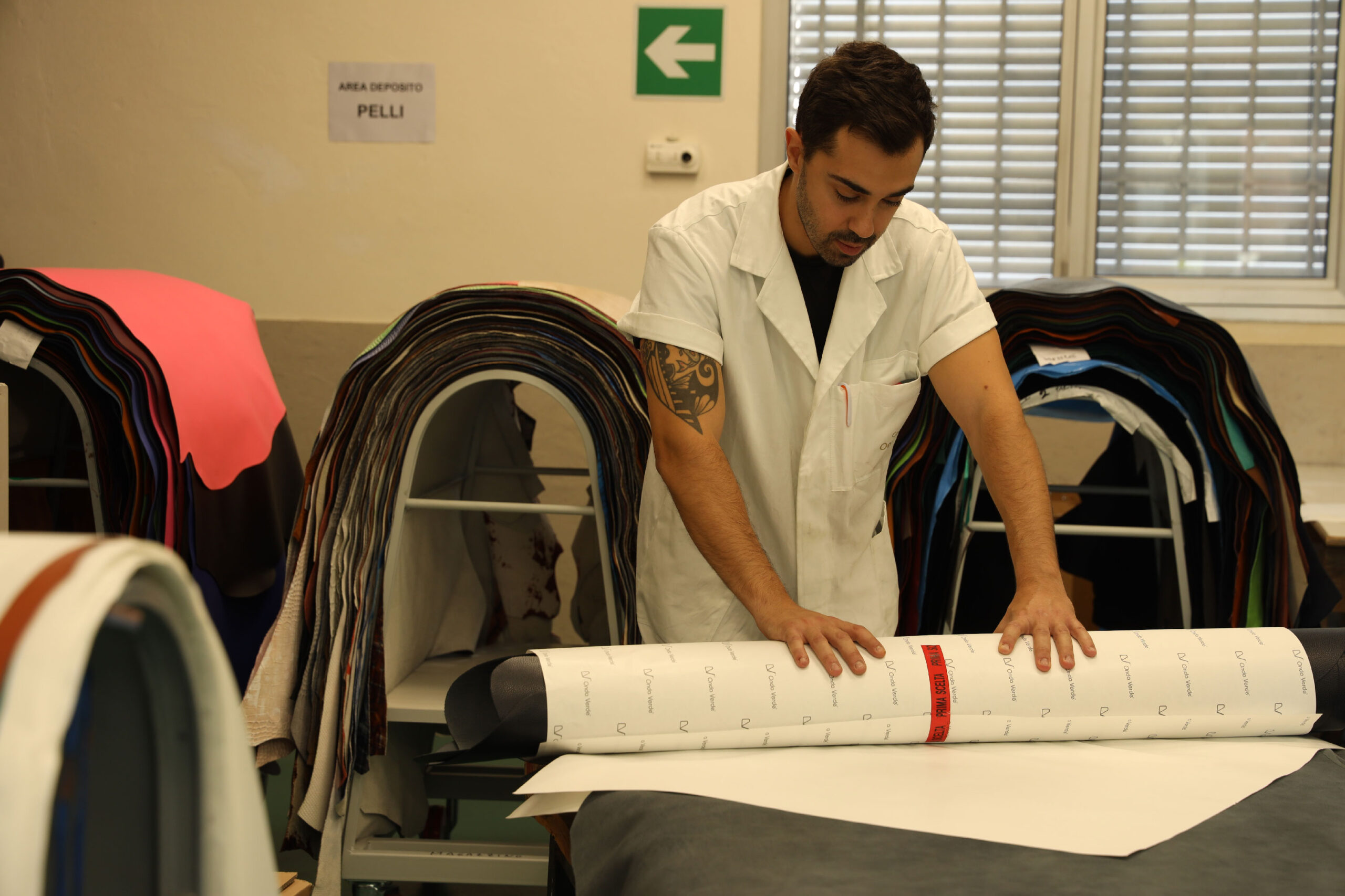Selezione:l’operatore ricco di una certa esperienza, esegue una selezione della superficie della pelle, qualificando la superficie in varie selezioni a seconda del prodotto finito da realizzare.
